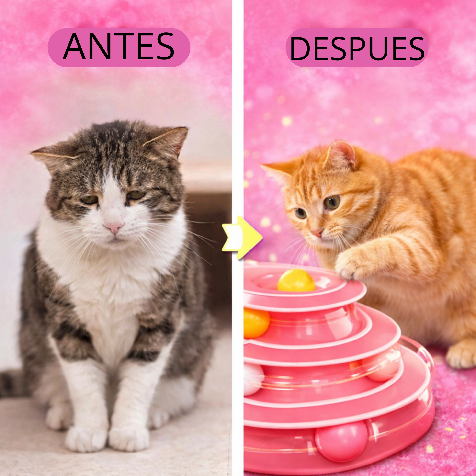 - 🎯 Diseño de tres capas con bolas giratorias que estimula el instinto de caza y la curiosidad natural.