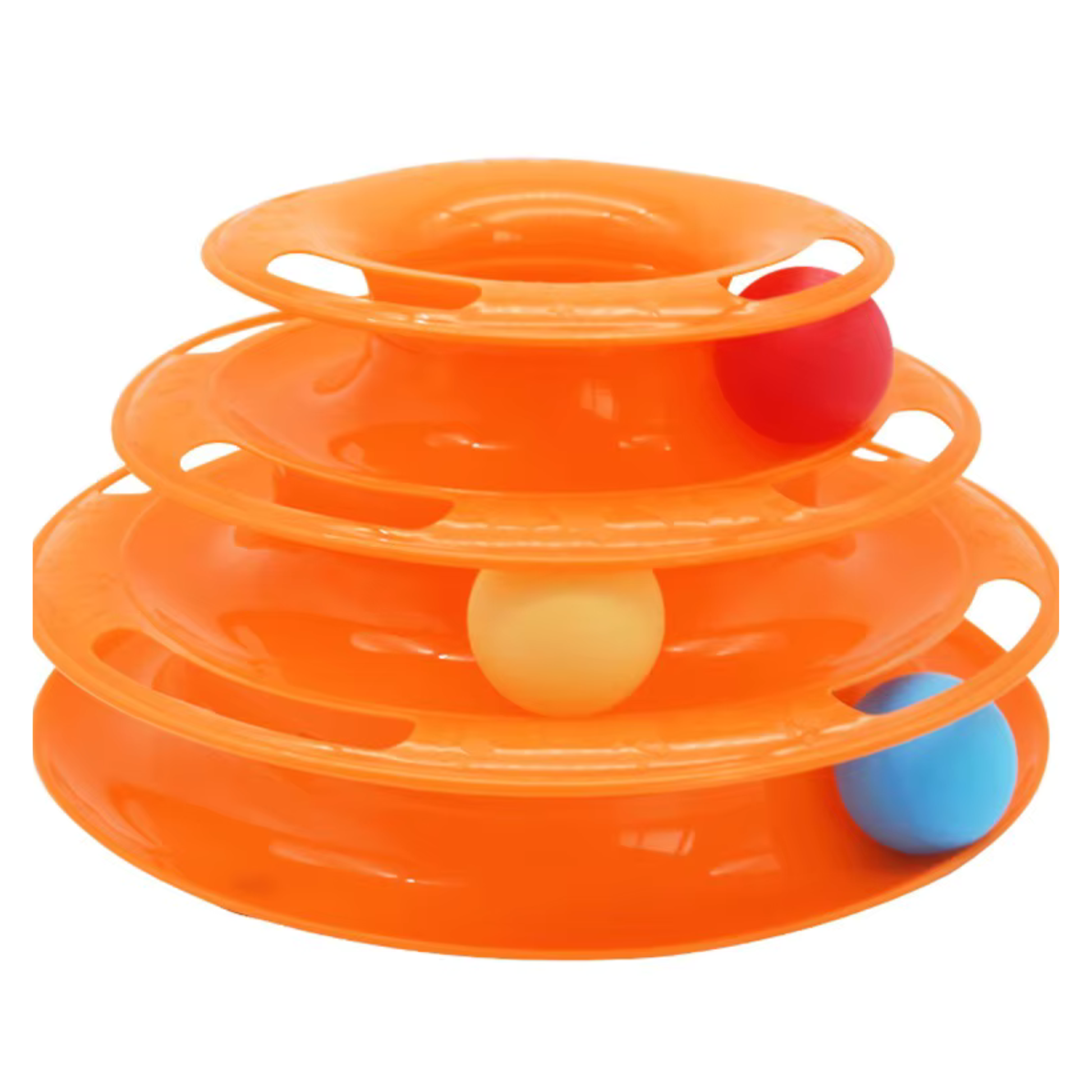 Juguete interactivo para gatos con diseño de torre espacial de tres niveles, creado para estimular el juego activo y la inteligencia felina. Sus bolas giratorias tipo tocadiscos despiertan el instinto natural de caza, manteniendo a tu gato entretenido durante largos periodos.